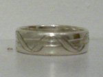 silver size 8 and 3/4 4mm wide 1.5 mm thick. Engraved on it